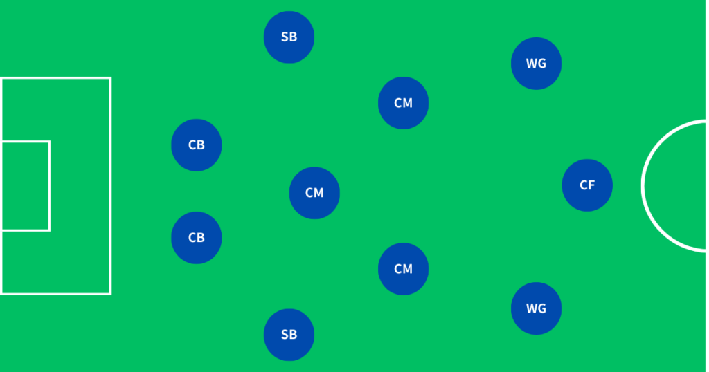 | 基本配置 | GK、4バック、アンカー1枚、インサイドハーフ2枚、ウイング2枚、1トップ |